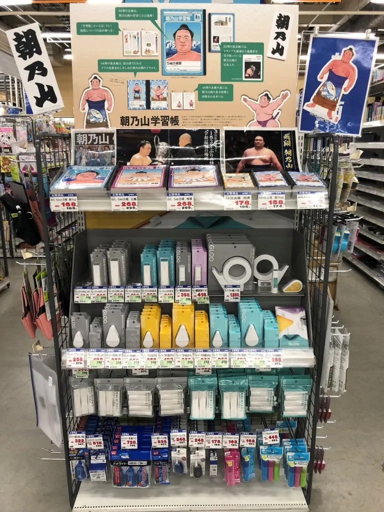 【シマヤ砺波店様】にてショウワノート様より記念すべき令和元年最初の大相撲夏場所にて優勝を飾った朝乃山の学習帳が