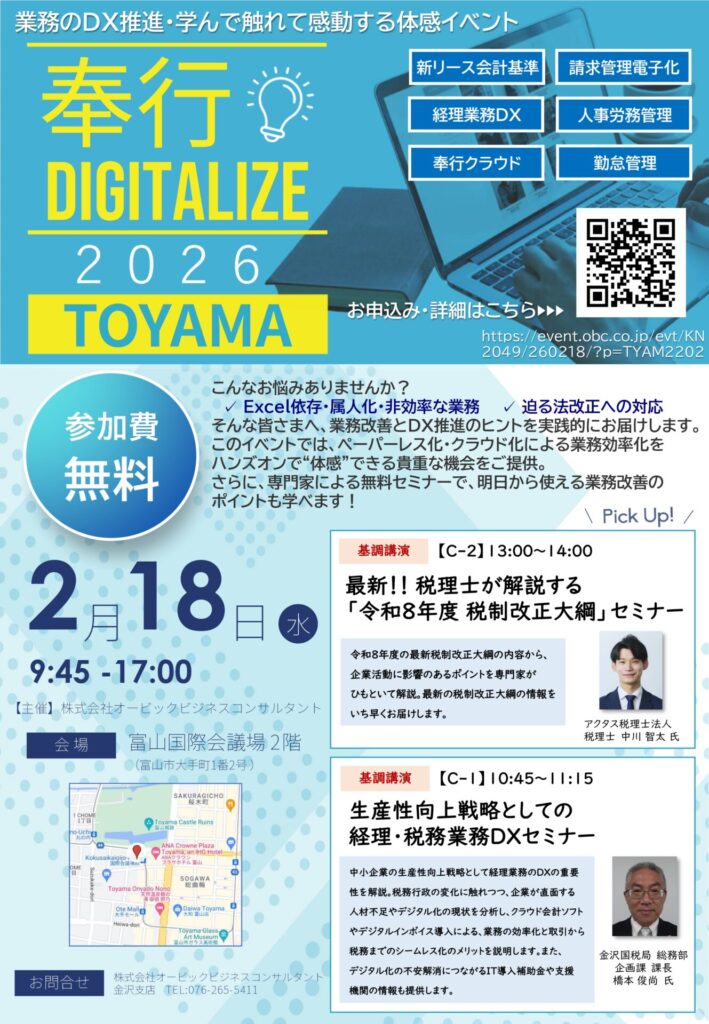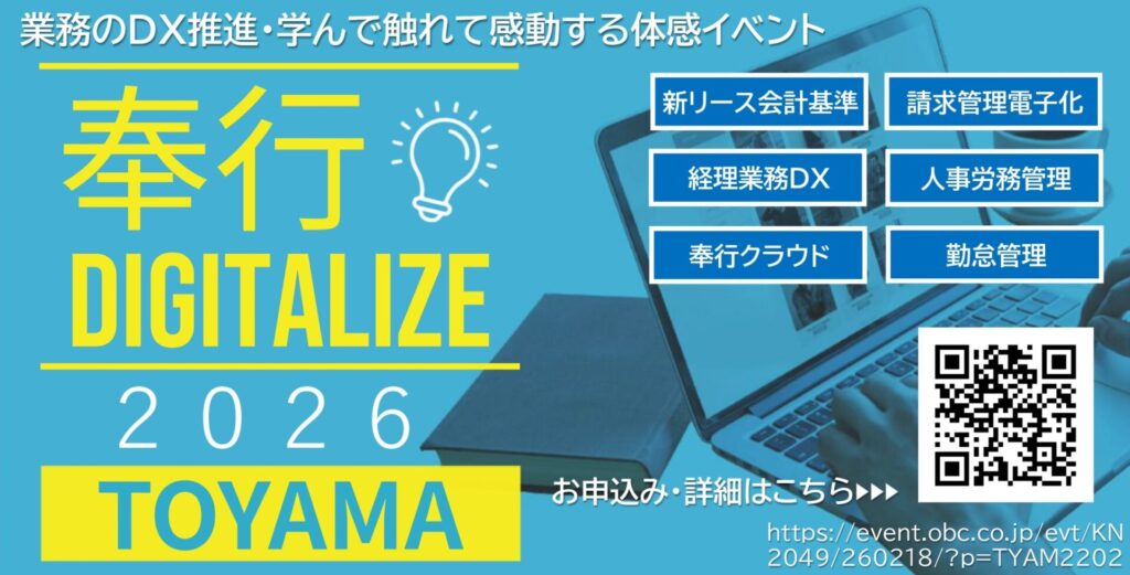 このたび下記のとおり「奉行DIGITALIZE 2026 in 富山」を開催いたします。