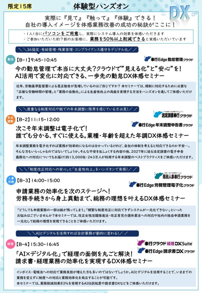 勤怠DX/年末調整DX/労務・総務DX/請求書・会計DX体感セミナー