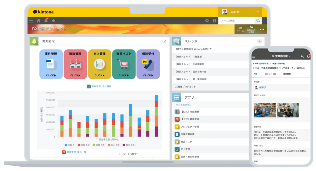 在庫管理と発注業務がkintoneで完結するようになり、ミスが大幅に減りました。データの見える化で経営判断も早くなりました。